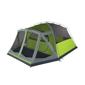 Barraca Coleman Skydome 8 Pessoas Familia - 3000mm Coluna DaguaA Barraca Skydome tm com Espaço para 8 Pessoas oferece um ambiente espaçoso e ideal para acampar com amigos e familiares. Com sua inovadora estrutura de varetas pré-fixadas coloridas, a montagem é simplificada, levando menos de 5 minutos para ser concluída, permitindo que você desfrute de mais tempo relaxando durante o acampamento.Esta barraca proporciona uma divisão inteligente em dois espaços distintos, incluindo uma sala de tela resistente às condições climáticas. A inclusão de uma E-port possibilita a conexão de uma extensão elétrica, trazendo energia para dentro da barraca, enquanto os bolsos internos auxiliam na organização dos seus pertences.Em relação às condições climáticas, a Barraca Skydome tm é equipada com o sistema WeatherTec tm , que apresenta cantos soldados, costuras invertidas e seladas, garantindo que você permaneça seco mesmo em caso de chuva. Além disso, sua estrutura robusta foi testada para suportar ventos com velocidade de até 56,3 Km/h, proporcionando segurança e tranquilidade durante sua estadia.Especificações:altura central: 1,9 m 1,9x3,6x4,1mLargura: 3,6 mComprimento: 4,1 mPeso: 22kg Comporta 2 colchões Queen fora o espaço do avanço que pode ser para colchão também . Acompanha bolsa de transporte. Marca: Não Informado