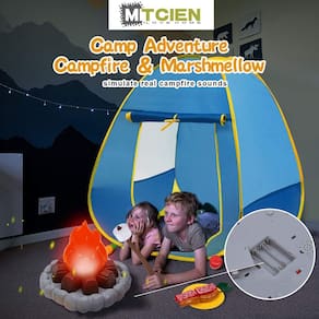 Conjunto de tendas MITCIEN Camping Play com fogueira, marshmallow/frutas, conjunto de tendas para meninos e meninas, jogos de fingir em ambientes fechados e ao ar livre