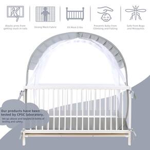 - ???Design pop-up de 3 segundos?Nenhuma ferramenta é necessária! Basta remover a fita e a barraca do berço se monta automaticamente. Inclui alças ajustáveis para todos os berços padrão (55,2" x 27,6" x 51,6").