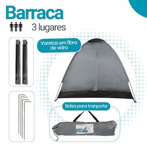 Barraca de camping 3 pessoas impermeável com bolsa Cor: cinza claro Nome do produto: barraca de camping 3 pessoas impermeável com bolsa Tes 0009 barraca de acampamento de poliester Sobre o produto: Barraca de camping 3 pessoas impermeável com bolsa Viva momentos inesquecíveis na natureza com nossa barraca iglu perfeita para suas aventuras ao ar livre, ela oferece conforto e proteção para você e seus amigos. Espaçosa: acomoda até 3 pessoas com conforto. Resistente à água: protege contra chuva e umidade. Fácil de montar: pronto para usar em poucos minutos. Bolsa de transporte: prática para carregar e guardar. As barracas iglu da mor são super fáceis de montar devido a sua estrutura em varetas de fibra de vidro interligadas. São confeccionadas em poliéster e a costura entre o piso e o dormitório é invertida, evitando vazamentos de água para o interior da barraca. O piso é confeccionado em polietileno ráfia reforçado. Além disso, elas possuem sacola de nylon para transporte, mosquiteiro na porta e no teto, local para pendurar lanterna dentro da barraca e proteção contra vazamentos a barraca não protege 100% da chuva. Barraca de camping 3 pessoas impermeável com bolsa Principais características: - capacidade: 3 pessoas - estrutura da vareta em fibra de vidro interligadas - costura reforçada, evitando vazamento de água para o interior da barraca - piso reforçado evitando vazamento de água - local para pendurar a lanterna na parte interior - mosquiteiro na porta e no teto - sacola de nylon para transportar a barraca - proteção contra vazamento - montagem sem uso de ferramentas - fácil de montar e desmontar Barraca de camping 3 pessoas impermeável com bolsa Especificações técnicas: - conteúdo da embalagem: 1 barraca para 3 pessoas - composição/material:poliéster, polietileno, fibra de vidro - dimessão do produto aberta: lxcxa 1,60 x 2,05 x 1,15 cm - peso: 1,500kg - : 30 dias contra defeito de fabricação pelo fabricante Fotos ilustrativas cores e modelos podem variar conforme fabricação Barraca de camping 3 pessoas impermeável com bolsa