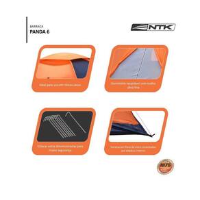 A Barraca de Camping Panda 6 para 6 Pessoas é ideal para quem busca acomodação prática em acampamentos e passeios ao ar livre. Com capacidade para até 6 pessoas e coluna dágua de 600mm, oferece conforto básico em clima seco. Sua estrutura em varetas de fibra de vidro com sistema NANO-FLEX facilita a montagem e garante leveza no transporte. O interior em poliéster com acrílico, piso em polietileno de alta resistência e bolsos internos contribuem para organização e durabilidade. Acompanha estacas e cordas para fixação, sendo uma opção funcional para campings em família ou entre amigos.
