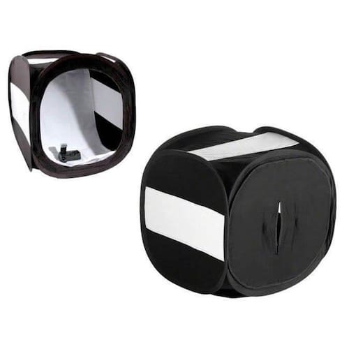 A Barraca Difusora Preta 75x75x75cm para Fotografia Still é como uma caixa de luz fotográfica, ela é projetada para distribuir uniformemente a luz externa como um difusor, o que cria ambiente de iluminação uma sombra menos para a fotografia de produtos e objetos. Também usada para minimizar reflexos e brilhos. Nossa Barraca Difusora Preta para Estúdio é fabricada especialmente a partir de tecido especial para difundir a luz, perfeito para fotografia still.Basta ter uma Barraca Difusora Preta para Estúdio, Flash ou iluminadores adequados, uma boa Câmera fotográfica, que você poderá ter fotografias de produtos o objetos perfeitas em segundos, especialmente para superfícies refletivas. Ideal para fotografia de produtos de e-commerce, catálogos, banners ...A barraca Difusora Preta 75x75x75cm para Fotografia Still foi especificamente projetada para capturar imagens de produtos refletivos ou superfícies brilhantes como metal, vidro ou jóias. Ele possui um tecido preto para ajudar a reduzir o reflexo e apresenta três painéis translúcidos em ambos os lados e no topo da tenda para permitir a entrada de luz na Barraca Difusora. Ele se encaixa e pode ser dobrado em uma pequena bolsa ideal para armazenamento ou levar com você para outro local. esta barraca Difusora de Luz para Estúdio é dobrável é fácil de transportar, seus 50x50cm abertos diminuem drasticamente quando fechada, podendo caber em bolsas e mochilas. Ela possui tenda frontal que fecha a caixa por completo, ainda sim, possui uma abertura para posicionar sua câmera; suportes para pendurar objetos como óculos e relógios.Características do produto: Facilidade de iluminação com panos Brancos Laterais e Superior Áreas brancas feitas de luz translúcida difundindo tecido branco Nylon de alta qualidade para melhor isolamento e difusão de luz Pano frontal removível e fenda da lente da câmera Ótimo para produtos como jóias, relógios, cristais e objetos altamente reflexivosIdeal para fotografia de objetos brilhantes e refletivos, por exemplo, aço inoxidável, vidro ou jóias Ótima para fotos, que devem ser cortadas Adequado para fotografia digital e analógica Luzes suaves e sem sombras Com conveniente técnica pop-up Slots de luz difusa nas laterais e na parte superior. Ean: 7898510917573