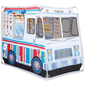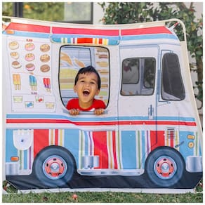 Esta barraca de brincar é perfeita para crianças que adoram cozinhar e soltar a imaginação Com mais de 0,91 metros de altura e quase 1,22 metros de comprimento, ela oferece muito espaço para várias crianças brincarem. O caminhão é coberto com obras de arte coloridas vibrantes e realistas, com janelas de serviço em ambos os lados. As crianças podem fingir servir churrasco de um lado e sorvete do outro, com abas de portas e janelas que se enrolam e uma aba de teto que se abre. A barraca de brincar vem com um menu reutilizável frente e verso para tornar o pedido ainda mais divertido. Ela é fácil de montar e guardar na prática bolsa de armazenamento para levar. Crianças a partir de três anos podem deixar sua imaginação correr solta com este brinquedo sem tela.