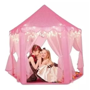 A criançada vai adorar brincar de fazer acampamento, piquenique, esconderijo, festa do pijama, cineminha. Uma tenda dos sonhos para as princesinhas brincarem com suas amigas! Ela possui luzes decorativas para deixar o ambiente mais charmoso e aconchegante, as meninas vão amar! Ela rapidamente se tornará o playground favorito de sua pequena, e também um local para descansar. É só armar a toca que a diversão está garantida! Ela é super fácil de montar e desmontar. A criançada pode levar a barraca para onde quiser! Ofereça um abrigo confortável para incentivar brincadeiras, aventuras e diversão entre a criançada. Todos precisam de um pouco de espaço só para eles. Dê a sua filha um lugar divertido para brincar ou dormir. Uma casinha perfeita para sua pequena Princesa!