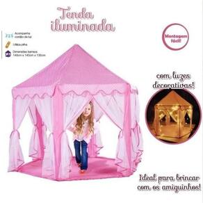 - Conteúdo da Embalagem: 01 Tenda Completa em Poliéster na Cor Rosa, luzes decorativas requer 3 pilhas AA, não inclusas - Cor Predominante: Rosa; - Dimensões Produto Montado: 140 x 140 x 135 cm - Formato: hexágono com seis lados ; - Peso: 2,1 Kg.