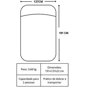 O Colchão Inflável KALA complementa a experiência, oferecendo uma superfície aveludada que mantém os lençóis no lugar e garante conforto superior para duas pessoas. Sua estrutura interna com bolsas de ar distribui o peso de maneira uniforme, reduzindo a pressão nos pontos de contato e garantindo uma noite de sono reparadora, seja em casa ou em um acampamento.