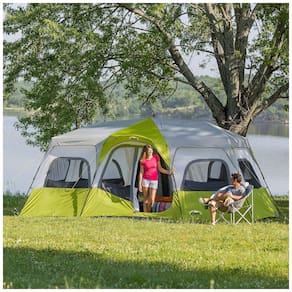 poliéster CONFIGURAÇÃO INSTANTÂNEA Configurações em 2 minutos ou menos Os bastões são pré fixados na barraca apenas desembale, desdobre, levante as pernas na posição e estique as pernas até que elas se encaixem no lugar. CONFORTÁVEL O rainfly repelente de água é removível em climas mais quentes para expor o teto de malha para vistas panorâmicas para observar as estrelas nas noites claras de verão. Além disso, o sistema de ventilação avançado usa a entrada de ar ajustável projetada para atrair o ar frio do solo, enquanto o teto de malha permite que o ar quente escape, mantendo você confortável durante toda a temporada. OPÇÕES DE DUAS ENTRADAS E TRÊS QUARTOS Entre pela porta D lateral ou pela porta T lateral, que possui duas divisórias de sala acopláveis que lhe dão liberdade para criar vários espaços separados de estar e dormir. O QUE ESTÁ NA BOLSA Barraca, cortina de chuva, varas de toldo, duas divisórias de quarto, estacas de barraca e bolsa de transporte Marca: Não Informado