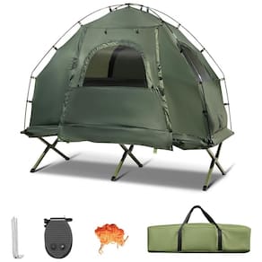 Poliéster, pano de Oxford Fabricado nos EUA ou importado Construção estável e durável Feito de ferro sólido, o tubo do pé é firme o suficiente para manter uma melhor estabilidade e suportar uma grande resistência. E o dossel de tecido oxford e tecido de poliéster é à prova dágua, resistente ao desgaste e à prova de arranhões Ideal para uso ao ar livre com dossel à prova dágua e haste de suporte de fibra de vidro resistente ao calor, esta tenda pop up é perfeita para uso ao ar livre em todos os climas Fácil zenamento e portabilidade O colchão de ar e o travesseiro podem se desdobrar automaticamente para facilitar o zenamento na bolsa de transporte. E para zená lo não ocupará muito espaço quando não estiver em uso. Todo o dossel com tubo de alumínio pesa muito leve Design atencioso e fácil de usar Projetado com janelas transparentes em todos os lados, é conveniente que você perceba a condição externa ao descansar durante o acampamento. E você pode fechar as janelas fechando o zíper Marca: Não Informado