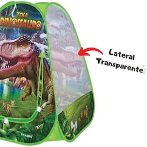 Toca Dinossauro, proporciona diversos momentos de diversão e alegria. Feita em tecido poliéster, com estampa de dinossauro. Possui armação em aço e sacola para transporte. Proporciona capacidade de locomoção, criatividade e imaginação de fantasia. Com esta super toca você terá incríveis momentos de pura diversão! NÃO ACOMPANHA BOLINHAS. Contém: