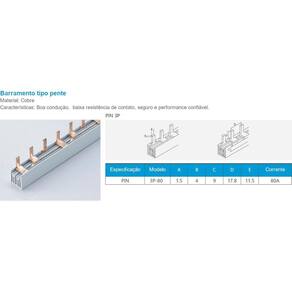 Barramento Tipo Pente Tripolar Modelo 3P 80A
