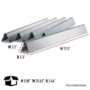 Weber Barras aromatizantes de substituição, 44,5 cm, para série Genesis 300 (painel de controle montado na frente), aço inoxidável - Pegue pingos que fumam e chiam, adicionando um sabor esfumaçado aos alimentos - Conjunto de 5 barras - Serve para grelhas a gás Genesis 300 Series (com painel de controle montado na frente) - Não é compatível com grelhas da série Genesis II - Dimensões: 44,5 cm C x 5,5 cm L x 5,3 cm A - Distribui o calor de forma mais uniforme - Evita a exposição direta à chama - Serve para grelhas Genesis série 300 - Dimensões do produto: 17,5 x 2,25 x 2,375