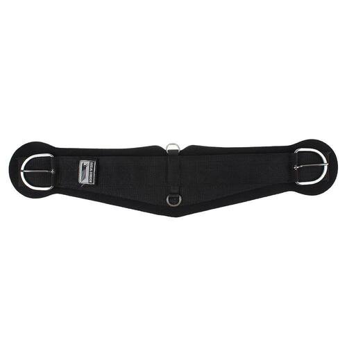 Barrigueira Air Flex de 32 Rodeo West modelo larga fabricada em EVA (espuma vinílica acetinada) com revestimento em tecido de poliéster, possui nylon reforçado com fivelas e argolas em aço inox e tira autocolante que permite a troca do refil. Sua estrutura permite a passagem do ar por toda a barrigueira, além de diminuir o acúmulo de sujeira e areia que podem causar assaduras no animal.