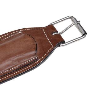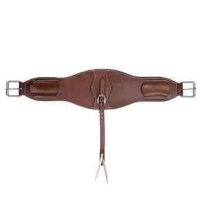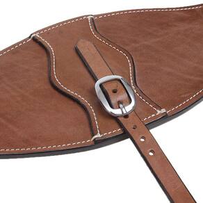 Barrigueira traseira Rodeo West fabricada em couro na cor Marrom com 17,5cm de largura, possui fivelas de metal, costuras reforçadas e conector de barrigueira em couro com fivela para regulagem.