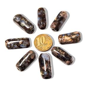Nome: Riolita Rosa Natural Cor: Rosa suave com padrões marrons e brilho discreto (foto ilustrativa) Formato: Barril rolado com furo longitudinal (aprox. 3 mm), ideal para passar fios e cordões Claridade: Semitransparente com brilho vítreo suave Medidas: 20 a 25 mm (variação conforme o estoque) Quantidade: 1 unidade por pedido