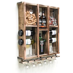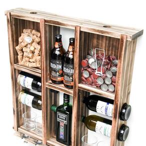 Barzinho em Madeira Maciça com Porta Rolhas, Tampinhas e Taças Cor Relic Envelhecida - Fabricado em Madeira Maciça, Certificada e Sustentável; - Compartimentos Porta Rolhas e Tampinhas com vidros frontais adesivados e fundos removíveis; - Comporta até 7 Garrafas; - Suporte para 6 Taças; - Dimensões do Produto: 70cm de Altura, 65cm de comprimento e 12cm de Largura; - Acompanha Kit de Fixação; - O produto é enviado MONTADO, com Porta Taças destacado. Garrafas e Taças não Acompanham o Produto Marca: Não Informado Ean: 7897072197225