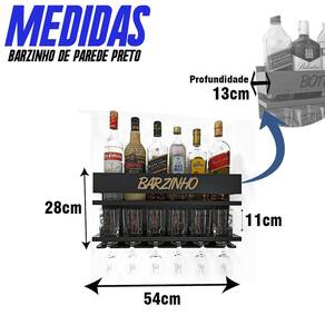 Principais Características: Feito 100% em MDF 15mm Bilaminado Capacidade Aproximada para 6 Garrafas + 6 Copos + 6 Taças Dimensões: 54cm de largura x 28cm de altura x 13cm de profundidade Acompanha parafusos e buchas para fixação.