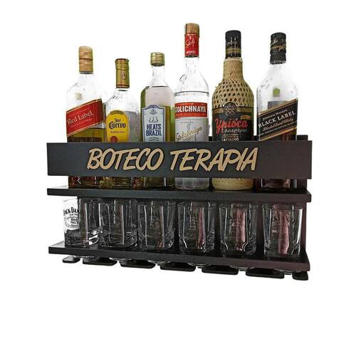 Barzinho de Parede - Boteco Terapia - 54x28 - Preto Que presente exclusivo para seu amigo a , pai, mãe, namorado a , familiares, etc., em Se você está à procura de algo EXCLUSIVO, DIFERENCIADO, BONITO e com acabamento de PRIMEIRA para dar de presente ou para você mesmo acabou de encontrar. Impressione á todos deixando suas bebidas bem visíveis e organizadas com o nosso BARZINHO de PAREDE. Esse barzinho ocupa pouquíssimo espaço em seu ambiente, porém chama muito a atenção de quem o vê, justamente por ser um produto diferenciado dos demais existentes no mercado. Não Perca Tempo, peça já seu BARZINHO Principais Características: Feito 100% em MDF 15mm Bilaminado Capacidade Aproximada para 6 Garrafas + 6 Copos + 6 Taças Dimensões: 54cm de largura x 28cm de altura x 13cm de profundidadeAcompanha parafusos e buchas para fixação. Indicações de Uso: Pubs Home Bar Varandas e Sacadas com temática Gourmet Cozinhas Salas em Geral ChurrasqueirasObs: Imagem Meramente Ilustrativa, Copos, Garrafas e Demais Acessórios Não Acompanham o Produto