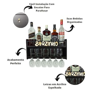 - Medida Total do Barzinho: 49 cm de comprimento x 26 cm de altura x 12 cm de profundidade - Espaço para copos : 46 cm de comprimento x 11,5 cm de altura x 11,5 de profundidade - Capacidade de taças : 6 taças -capacidade de copos: 5 copos