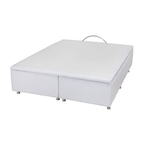 Informações Técnicas: -Estrutura Interna: Estrutura em madeira Eucalipto Domus de Reflorestamento, pistões de amortecimento. -Estrutura Externa: Material Sintético -Cor: Branco -Altura: 39cm - Largura: 158cm - Comprimento: 198cm -Capacidade de suporte: Até 120kg por pessoa além do Colchão -Acompanha: 2 partes da Base Ortobom + Tampo + Kit pés + Mecanismo de amortecimento + Alça de Sustentação + Junções + Chave para montagem + Manual