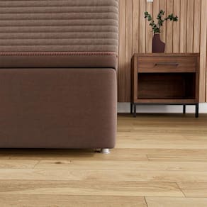 Estrutura em madeira de reflorestamento, espuma Pró Aditivada com Poliol a base de Soja, Revestido em Camurça. Acompanha jogo de pés em PVC, chapa união para as medidas superiores a Solteiro e sistema de suporte e amortecimento.