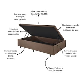 Com revestimento em Linho Marrom, a higienização é facilitada e seu acabamento protege o baú de qualquer deformidade por impacto externo.