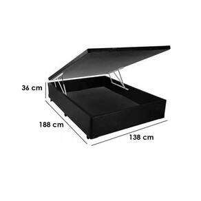 Base Box Baú Casal 36x138x188 A Base Box Baú Casal 36x138x188 é mais uma ótima opção para você que gosta de um comodo organizado e com um visual impecável. Nela você poderá acomodar o seu colchão perfeitamente e ainda armazenar travesseiros ou cobertas em seu Baú, assim você economiza espaço no quarto com muita facilidade, basta levantar o box com muita facilidade devido ao seu sistema de pistão a gás anti-impacto.\nMedidas\nAltura 36 cm\nLargura 138 cm\nComprimento 188 cm\nCaracterísticas\nModelo Base Box Baú Casal\nTipo do produto Base Box\nAmbiente Quarto\nAuxiliar Não\nTamanho Casal\nCor Preto\nPés com Rodízio Não\nGarantia 3 meses\nInformações Importantes\nObjetos decorativos que porventura apareçam na foto, não acompanham o produto. Não nos responsabilizamos pela montagem/instalação dos produtos.\nMontagens, desmontagens e instalações são responsabilidades do cliente. Indicamos que contrate uma empresa de montagem ou um montador de sua confiança.\nAlém disso, favor verificar se os pés e acessórios estão dentro do forro inferior do produto. Em suma, todas as informações divulgadas sobre o produto são de responsabilidade do Fabricante.\nAs cores do produto podem variar de acordo com o seu monitor, a iluminação do ambiente em que você está e até mesmo a sua percepção visual. Além da cor, pequenos detalhes e acabamentos podem não ficar evidentes na foto, por isso as imagens são meramente ilustrativas.