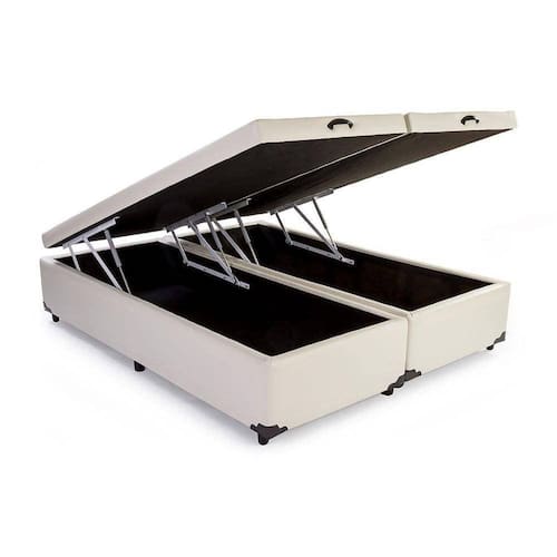 Base Box Baú Casal Bipartido Sintético Bege 39x138x188 Lord