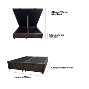 Base Box Baú Queen 158x198cm com Pistão a Gás Estrutura Reforçada Smart Marrom