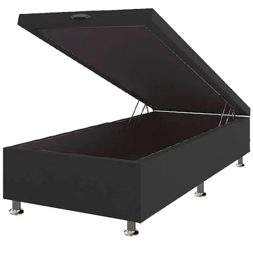 Base Box Baú Solteirão Corino 40x108x188 Framar Não é uma sensação ótima saber que o seu quarto está organizado e com um visual impecável? Para isso você pode contar com a Base Box Baú Solteirão Corino 40x108x188 Framar! Linda, ela é fabricada com materiais de ótima qualidade e excelente resistência. Perfeita para guardar as roupas de cama como edredom e cobertores.\nMEDIDAS\nAltura 40cm\nLargura 108cm\nComprimento 188cm\nCARACTERÍSTICAS\nFabricante Framar\nModelo Base Box Baú Solteirão Corino\nGarantia 3 meses\nTipo de produto Base Box Baú Solteirão\nAmbiente Quarto\nEstrutura Madeira Eucalipto\nRevestimento Corino\nPossui Pistão à Gás Sim\nQuantidade de Pés 06\nINFORMAÇÕES IMPORTANTES\nObjetos decorativos que porventura apareçam na foto, não acompanham o produto. Não nos responsabilizamos pela montagem/instalação dos produtos.\nMontagens, desmontagens e instalações são responsabilidades do cliente. Indicamos que contrate uma empresa de montagem ou um montador de sua confiança.\nAlém disso, favor verificar se os pés e acessórios estão dentro do forro inferior do produto. Em suma, todas as informações divulgadas sobre o produto são de responsabilidade do Fabricante.\nAs cores do produto podem variar de acordo com o seu monitor, a iluminação do ambiente em que você está e até mesmo a sua percepção visual. Além da cor, pequenos detalhes e acabamentos podem não ficar evidentes na foto, por isso as imagens são meramente ilustrativas
