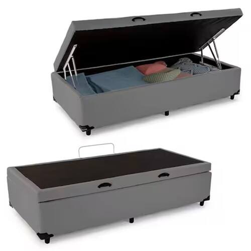Base Box Bau Solteirão Premium Santo Box Sintético 47x128x188 - Cinza