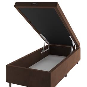 - Categoria: Base de Cama Box - Revestimento/Acabamento: Tecido - Quantidade de Pés: 6 - Garantia (dias): 90 Dias - Recomendação de Manutenção: Utilizar pano levemente umedecido, seguido de pano seco. Não utilizar quaisquer produtos abrasivos. - Observação: Objetos decorativos que aparecem nas imagens, não acompanham o produto. A capacidade de carga considera que o peso está distribuído igualmente pela peça. As cores das imagens podem variar de acordo com as configurações do seu monitor e/ou da iluminação do ambiente onde o produto está inserido. As imagens indicam uma sugestão. - Indicação de Uso: Quarto - Pode Ser Montado Invertido?: Não - Sistema de Montagem: Parafusos - Grau de Dificuldade de Montagem: Médio - Necessita de Montagem: Sim - Como os Móveis Chegarão em Minha Casa?: Desmontado em caixas, acompanhado de todas as peças, ferragens e manuais para montagem. - Possui Borda de PVC nas Bordas?: Não - Pés com regulagem de altura?: Não - Possui Pés?: Sim - Possui Sapatas?: Não - Possui Rodízios?: Não - Espessura do Tampo (mm): 25 mm - Material do Tampo: Madeira de Eucalipto, TNT, Espuma, Matelassê - Possui Tampo?: Sim - Escala de Brilho: Semi-Brilho - Material do Puxador: Plástico - Possui Puxadores?: Sim - Possui Prateleiras?: Não - Tipo de Enchimento: Base Box revestida com tecido, tampo em TNT e matelassê com 5mm de espuma - Possui Espelho?: Não - Superfície Antideslizante: Não - Estrutura da Base: Madeira Eucalipto - Pés Removíveis: Sim - Material dos Pés/Rodízios: Madeira de Eucalipto - Modelo: Solteiro - Altura dos Pés: 75 - Tecido Lateral: Veludo, exceto nas cores Turkey Azul e Turkey Rose - Quantidade Pés/Rodízios: 6 - Cantoneiras: Sim - Tecido Superior: TNT - Possui Portas?: Não - Possui Gavetas?: Não - Espessura da Estrutura: 25 mm - Material da Estrutura: Eucalipto