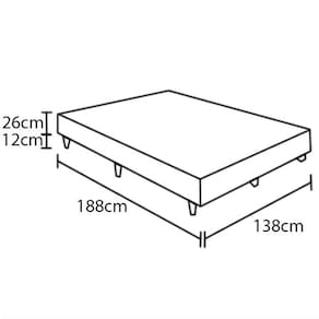 Base Box Cama Casal 26x138x188cm Courino A Base Box Cama Casal 26x138x188cm Courino é um excelente produto para modernizar de forma prática o seu quarto. Toda produzida com resistente madeira de reflorestamento. Revestida em Courino, oferece um lindo e elegante acabamento. Ideal para acompanhar Colchões de 138cm. A Base acompanha jogo de pés. Aproveite!\nMedidas\nAltura 26 cm\nComprimento 188 cm\nLargura 138 cm\nCaracterísticas\nModelo Base Box Cama Casal\nTipo do produto Base Box\nAmbiente Quarto\nMaterial Madeira de Reflorestamento\nColchão Indicado 138 cm x 188 cm\nTamanho Casal\nTipo de Proteção Antiácaro, Antialérgico e Antimofo\nPossui Pés Sim\nGarantia 3 meses\nInformações Importantes\nObjetos decorativos que porventura apareçam na foto, não acompanham o produto. Não nos responsabilizamos pela montagem/instalação dos produtos.\nMontagens, desmontagens e instalações são responsabilidades do cliente. Indicamos que contrate uma empresa de montagem ou um montador de sua confiança.\nAlém disso, favor verificar se os pés e acessórios estão dentro do forro inferior do produto. Em suma, todas as informações divulgadas sobre o produto são de responsabilidade do Fabricante.\nAs cores do produto podem variar de acordo com o seu monitor, a iluminação do ambiente em que você está e até mesmo a sua percepção visual. Além da cor, pequenos detalhes e acabamentos podem não ficar evidentes na foto, por isso as imagens são meramente ilustrativas.