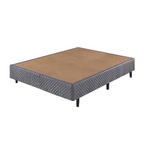 Características Pés fixo com rodízios 12 cm. Revestimento com tecido liso Faixa lateral bordada Estrutura em madeira Manta de espuma poliuretano Revestimento em chapa de compensado 4mm Estrado em madeira Tampo com tecido antiderrapante Peso suportado até 120 kg Para colchão padrão casal: 138 x 188 cm.(não incluso)