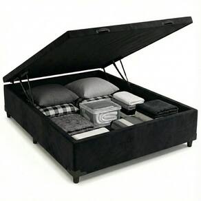 Base Box com Baú Frontal Suede Padrão Classic Preto