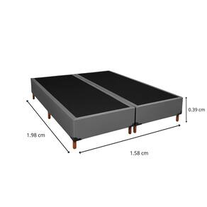 Base Box Casal 1,58x1,98 com estrutura em eucalipto tratado e chapa de pinus, garantindo firmeza e durabilidade. Revestida em tecido Sued VeloPlus, traz elegância e toque macio. Possui 6 pés de madeira cada lado, fixação reforçada com buchas internacionais e grampos galvanizados de alta pressão (como Rocama 80/16), além de TNT 75g na tampa e 60g no fundo, que protegem contra poeira e umidade. As quinas são envelopadas com fibra siliconada para acabamento sofisticado, e cantoneiras plásticas aumentam a resistência no transporte. Qualidade, conforto e estilo em um só produto. Acompanha Cama Auxiliar: Não Ambiente Principal: Quarto Bicama: Sim Cantoneiras: Sim codigo_ean: 7900288277886 Cor: Cinza Cor do Produto: Cinza Itens Inclusos: 2 Bases Box e Kit Ferragens Marca: VERSANI MÓVEIS Material da Estrutura: MADEIRA DE EUCALIPTO Material dos Pés: Eucalipto Necessita Montagem: Sim Origem do Produto: Nacional Peso: 48 Possui Baú: Não Recomendações de Uso, Manutenção e Limpeza: Evite deixar em lugares expostos a umidade. Não aplique produtos corrosivos.Não utilize sem colchão. Revestimento da Base Box: Tecido Sued Tamanho do Produto: Queen Marca: Não Informado