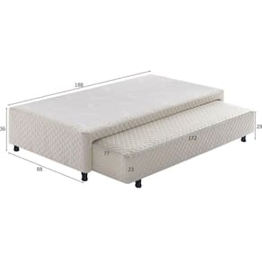Os modelos de somiê auxiliar, com opção de colchão de mola são acessórios desenvolvidos para facilitar e complementar suas noites de sono e otimizar seu espaço. Produzido com o molejo verticoil, sistema flexível e confortável para aumentar o conforto de quem a utiliza; revestidos com tecido protegido antialérgico, antimofo, antiácaro. Somiê resistente com pés fixos de madeira com 6 cm. Fácil de utilizar, somente puxar debaixo do somiê, colocar o lençol e está pronto para uma ótima noite. Mais uma opção para dormir de noite e durante o dia fica bem acoplada embaixo do somiê, sem ocupar espaço desnecessário em seu ambiente.