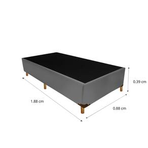 Base Box Solteiro 0,88x1,88 com estrutura em eucalipto tratado e chapa de pinus, garantindo firmeza e durabilidade. Revestida em tecido Sued VeloPlus, traz elegância e toque macio. Possui 6 pés de madeira, fixação reforçada com buchas internacionais e grampos galvanizados de alta pressão (como Rocama 80/16), além de TNT 75g na tampa e 60g no fundo, que protegem contra poeira e umidade. As quinas são envelopadas com fibra siliconada para acabamento sofisticado, e cantoneiras plásticas aumentam a resistência no transporte. Qualidade, conforto e estilo em um só produto. Acompanha Cama Auxiliar: Não Ambiente Principal: Quarto Bicama: Não Cantoneiras: Sim codigo_ean: 7900288277572 Cor: Cinza Cor do Produto: Cinza Itens Inclusos: 1 Base Box e Kit Ferragens Marca: VERSANI MÓVEIS Material da Estrutura: MADEIRA DE EUCALIPTO Material dos Pés: Eucalipto Necessita Montagem: Sim Origem do Produto: Nacional Peso: 29 Possui Baú: Não Recomendações de Uso, Manutenção e Limpeza: Evite deixar em lugares expostos a umidade. Não aplique produtos corrosivos.Não utilize sem colchão. Revestimento da Base Box: Tecido Sued Tamanho do Produto: Solteiro Marca: Não Informado