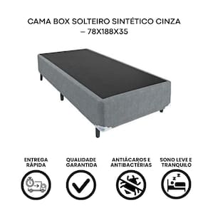 Base Box Solteiro Suede Cinza - 78x188cm