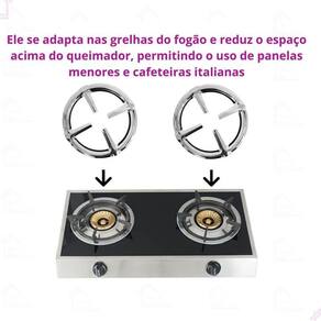 Nosso empenho é procurar o que há de mais atual e funcional no mundo culinário e para organização da sua casa, priorizando sempre a qualidade e a versatilidade dos produtos. Base de cafeteira italiana suporte para boca de fogão O suporte de grelhas de fogão é ideal para utilização de panelas com o fundo pequeno, cafeteiras italianas e para cafeteiras mini express. Permite melhor encaixe na boca do fogão. Serve para todos os tamanhos de cafeteiras italianas. Os redutores de grelhas são práticos e funcionais, utensílios perfeito para a sua cozinha, que vai facilitar o seu dia a dia. Resistente a altas temperaturas. Medidas: Diâmetro externo: 13,5 cm Diâmetro interno: 10 cm Material: Aço inox Conteúdo da embalagem: 1 suporte de fogão para cafeteira Gostou Esse produto pode ser seu aguardamos sua compra Marca: Não Informado Ean: 7898736290931
