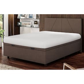 DIMENSÕES DA CAMA BOX BAÚ Altura total: 40 cm; Comprimento total: 188 cm; Largura total: 138 cm; Altura Interna: 28 cm; Altura dos pés: 6 cm; Suporta até 120 Kgs por pessoa Peso: 28kg.