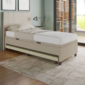 Base Cama Baú Solteiro com Cama Auxiliar c/colchão conjugado Linho SkyBox - Bege