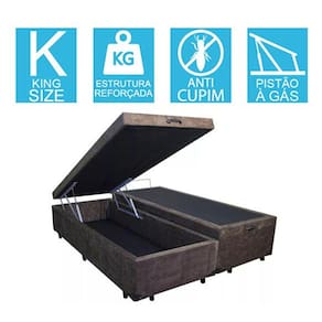 _x000D_ Feita com madeira reforçada 100% de reflorestamento, acabamento em tecido Suede, pistões à gás para uma abertura muito fácil, tratamento antialérgico e antiácaro, pés em madeira, estrutura recomendada para até 200kg distribuidos no box. Blindagem em chapa de madeira de 4mm.