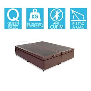 Linda Base Cama Box Baú Blindado Bipartido Queen Size 43x158x198 em Corino Marrom. Ideal para quem busca boas noites de sono e modernidade para o quarto.