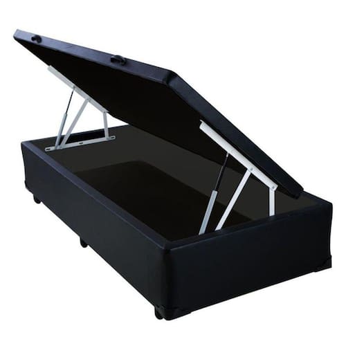 _x000D_ Feita com madeira reforçada 100% de reflorestamento, acabamento em tecido Couro Sintético, pistões à gás para uma abertura muito fácil, tratamento antialérgico e antiácaro, pés em madeira, estrutura recomendada para até 100kg distribuidos no box. Blindagem em chapa de madeira de 4mm.