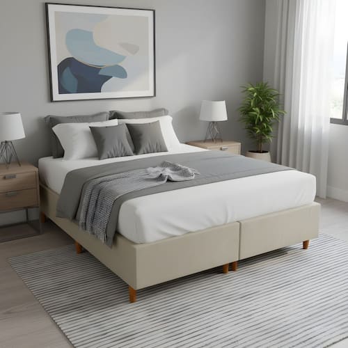 Ficha Técnica Detalhada: CaracterísticaEspecificaçãoProdutoBase para Cama BoxTamanhoQueen PadrãoCompatibilidade de Colchão158 cm x 198 cmCorBegeMedidas da Base (L x A x P)79 cm x 25 cm x 198 cm (2 peças)Altura dos Pés12 cmAltura Total (Base + Pés)37 cmMaterial da EstruturaMadeira de Eucalipto Reflorestada e TratadaRevestimentoTecido SuedeMaterial dos PésMadeira Maciça com Sapatas ProtetorasPeso SuportadoAté 150 kg por pessoa O que você vai receber: 2 Bases para Cama Box Queen na cor Bege1 Kit com 12 pés de madeira rosqueáveis2 Junções de metal OBSERVAÇÕES IMPORTANTES: