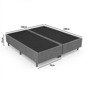 Ficha Técnica Detalhada: CaracterísticaEspecificaçãoProdutoBase para Cama BoxTamanhoQueen PadrãoCompatibilidade de Colchão158 cm x 198 cmCorPretoMedidas da Base (L x A x P)79 cm x 25 cm x 198 cm (2 peças)Altura dos Pés12 cmAltura Total (Base + Pés)37 cmMaterial da EstruturaMadeira de Eucalipto Reflorestada e TratadaRevestimentoTecido SuedeMaterial dos PésMadeira Maciça com Sapatas ProtetorasPeso SuportadoAté 150 kg por pessoa O que você vai receber: 2 Bases para Cama Box Queen na cor Preto1 Kit com 12 pés de madeira rosqueáveis2 Junções de metal OBSERVAÇÕES IMPORTANTES: