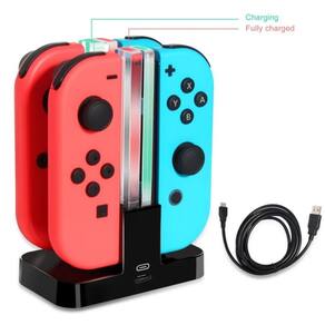 Projetado especialmente para o Joy-Con e o Switch. Fácil de usar, conveniente e prático. Use-o também para armazenar seus controles\ nCarregamento rápido do seu Joy-Con. O uso do USB tipo C permite que você use 5v, o que permite um processo de carregamento bastante rápido. Indicadores de duas cores para o status do carregamento: verde = carga cheia/vazia, vermelho = suporte\ nEspecificações: Modelo: TSN-875Entrada: cabo USB tipo C - 5V 1\ nCorrente de carregamento: 200mA * 4\ nMaterial: ABS Tamanho: 8,5x5x12cmCor: preto\ NIncluindo pacote: 1x Base de carregamento TNS-875* 1x Cabo USB
