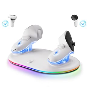 - ?Luzes RGB legais e controláveis?---- Suporte de carregamento para controles Meta Quest 3S/3/2 com 7 modos de iluminação RGB, proporcionando uma experiência visual imersiva durante os jogos e criando um espaço de jogo exclusivo para você. As luzes RGB controláveis permitem que você escolha se deseja ligar ou desligar as luzes RGB em diferentes situações, como modo sem suspensão
