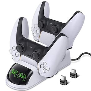 Características:- Carregamento rápido- Para controles PS5 wireless- Carrega dois controles simultaneamenteEspecificações:- Tensão: 5V- Bateria: 2*600mAConteúdo:01 Suporte base carregador para 2 controles01 Cabo USB + Tipo-C