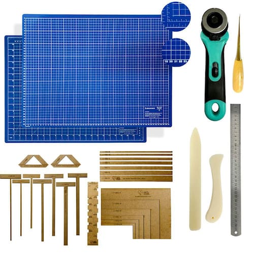 Quer trabalhar com Encadernação, Cartonagem e Scrapbook, e está precisando de um conjunto de ferramentas completo para te ajudar? Não procure mais... Temos a solução ideal para você! Kit com base de corte dupla face e flexível que serve como área de trabalho, possui a medida de 60cm x 45cm, excelente para organizar seu espaço, proteger seus moveis, cortar papeis, tecidos entre outros. Enviamos também um kit completo de réguas e Gabaritos em MDF para Scrapbook e artesanato. 7 - Gabaritos Medidas 6mmx30cm, 8mmx30cm, 10mmx30cm, 12mmx30, 15mmx30cm, 18mmx30cm, 20mmx30cm 2 - Réguas Fio de Cabelo 7- Esquadros Medidas: 30x22cm ( largura 5cm), 25x17cm (Largura 4cm), 21x13cm (Largura 3cm), 18x10cm (Largura 2cm), 16x8cm (Largura 1,5cm), 14,5x6,5cm(Largura 1cm) 7- Gabaritos em T Medidas: 6mmx32cm, 8mmx32cm, 10mmx32cm, 12mmx32cm, 15mmx32cm, 18mmx32cm, 20mmx32cm 1- Gabarito para Wire O (fio) 2x1 e 3x1 Medidas 2x1(Lado Direito): 5/8 120 Folhas, 3/4 140 Folhas, 7/8 180 Folhas, 1" 200 Folhas, 1 1/8 250 Folhas, 1 1/4 270 Folhas. Medidas 3x1 (Lado Esquerdo): 1/4 25 Folhas, 5/16 50 Folhas, 3/8 60 Folhas, 7/16 85 Folhas, 1/2 95 Folhas, 9/16 110 Folhas. Enviamos uma régua de metal de 60cm 2 ferramentas para dobrar e Vincar. 1 Cortador Manual de tecidos e papel com disco de 45mm. Agulhão furador com cabo de madeira Descubra a facilidade de fazer cadernos, capas, agendas entre outros com esse Kit completo, você poderá fazer cortes precisos em qualquer material sem ter que se preocupar em danificar as superfícies ou desperdiçar material. Desbloqueie seu potencial criativo! Compre agora o Seu kit completo e facilite os projetos de artesanato e patchwork.